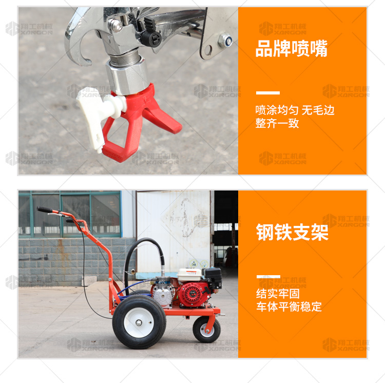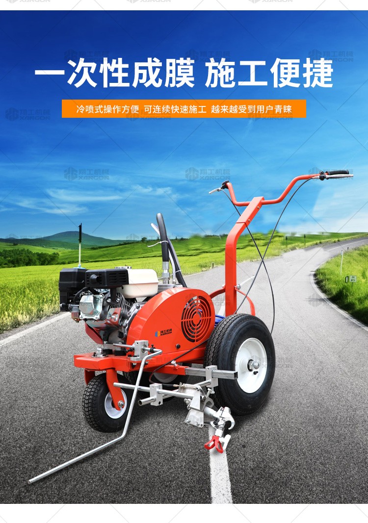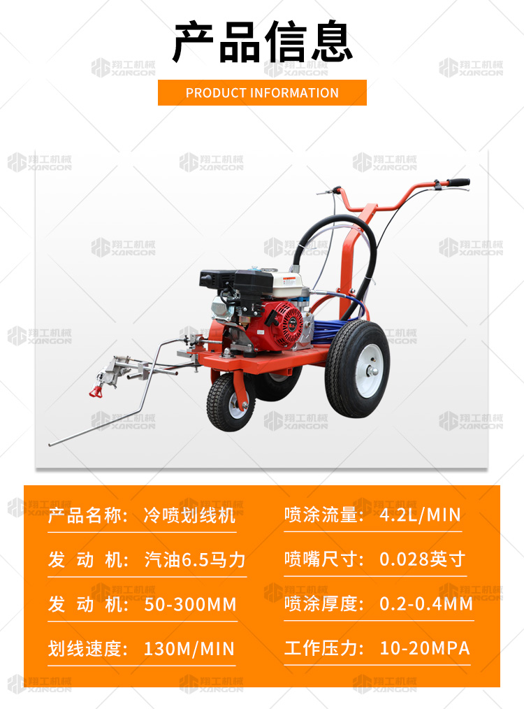 冷噴劃線機是劃線機設備中的一種,其由發動機提供動力,帶動高壓泵進行無氣噴涂,主要用于各種運動場地劃線,可以更換不同的噴嘴,可控制劃線寬度范圍,滿足不同應用要求。
