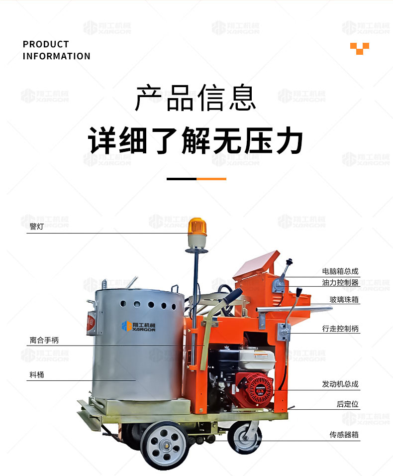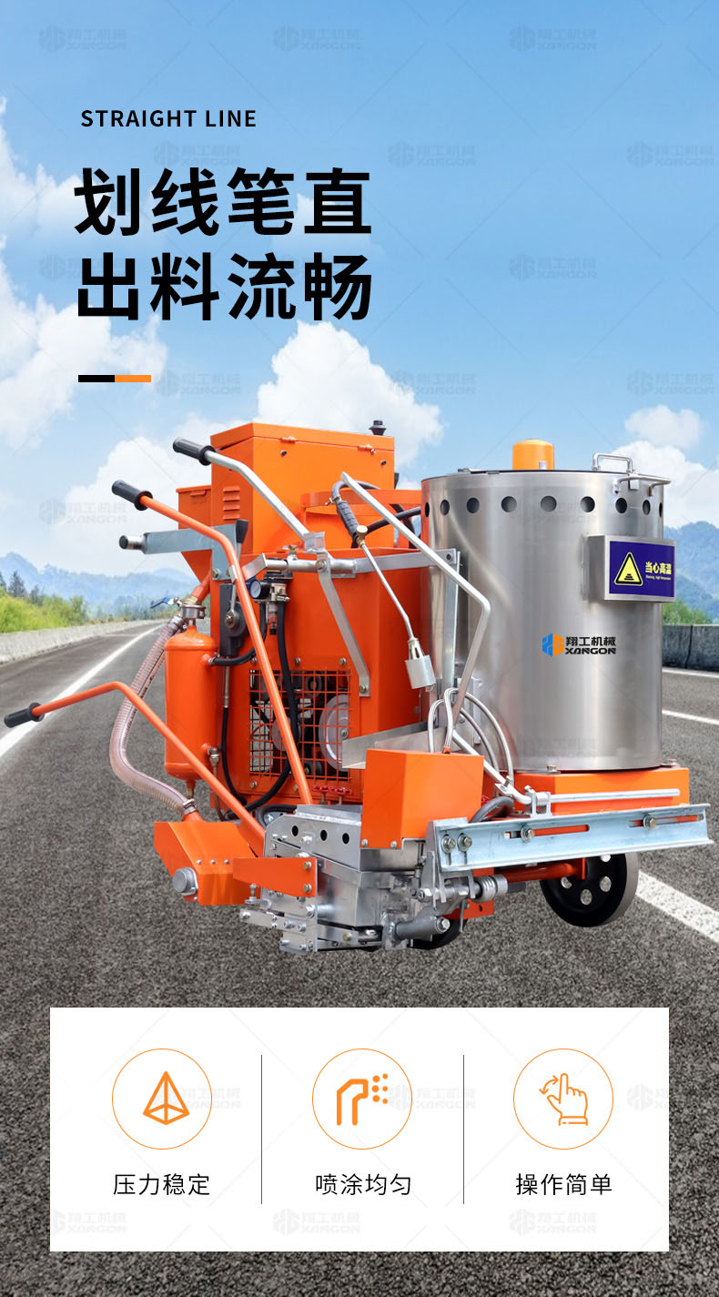 山東翔工機械有限公司致力于熱熔劃線機、冷噴劃線機、常溫劃線機、熱熔釜等路面機械的研發與生產